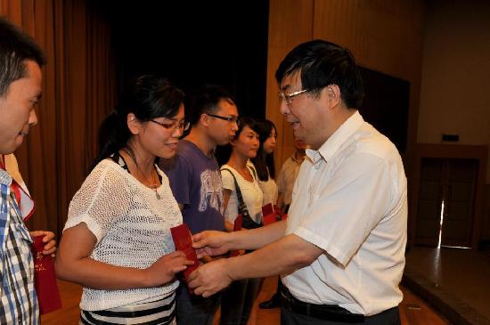 (党委书记范兵为获得奖学金的研究生颁奖)