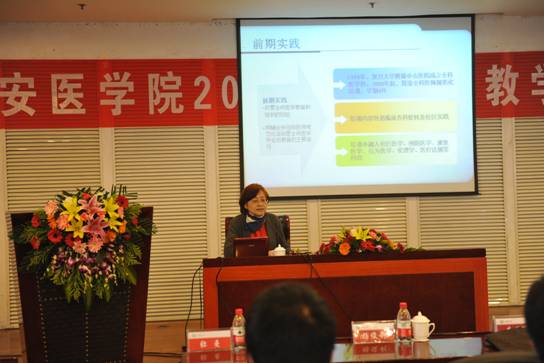 西安医学院2013级研究生现已如期完成半年的理论教学,2014年3月起将进入临床科室轮训阶段。为了加强研究生的培养力度,提高研究生的培养水平,使研究生培养工作更好的衔接,研究生处组织了本次研究生教学工作会议。会议8:30按时召开,副院长弥曼教授首先介绍了参会人员,院长唐俊琪在讲话中指出要正确把握我校研究生培养方向,在研究生教学和管理过程中应注意加强对学生科研能力的培养,并对导师提出相应要求。陕西省学位办杨俊利主任针对近年我省在研究生教育工作中取得的成绩做了总结,对工作表示认可的同时还指出未来工作的方向,并对我校今后研究生教育工作提出殷切期望。随后,祝墡珠教授做了《“四证合一”:临床医学硕士培养衔接全科住院医师规范化培训的创建》和《全科医学的核心理论与学术发展》两个专题报告。
