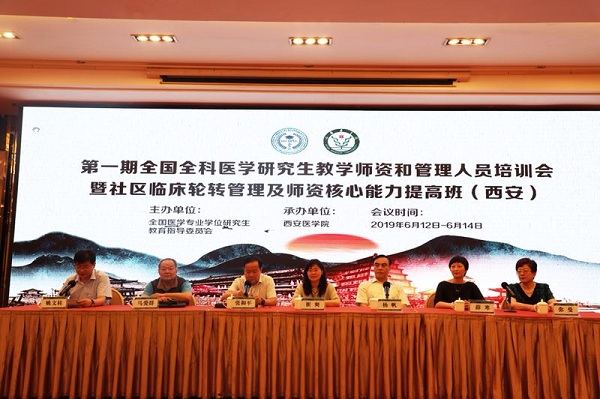 2019年第一期全国全科医学研究生教学师资和管理人员培训会暨社区临床轮转管理及师资核心能力提高班于6月13~14日在西安召开。本次会议由全国医学专业学位研究生教育指导委员会主办,西安医学院承办。来自全国60余所高等学校、医院和社区卫生服务中心的150余名全科医学研究生导师、全科医师规范化培训带教老师及教学管理人员参加会议。全国医学专业学位研究生教育指导委员会副秘书长崔爽、省教育厅学位管理与研究生教育处处长张和平、省卫生健康委员会科教处处长薛寒、陕西省医学会全科医学分会主任委员马爱群、副主任委员弥曼出席。西安医学院杨帆院长出席开幕式并致辞,西安医学院姚文柱副院长主持开幕式。