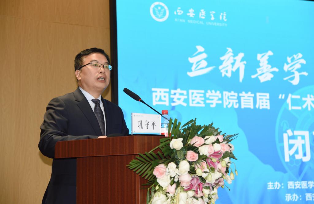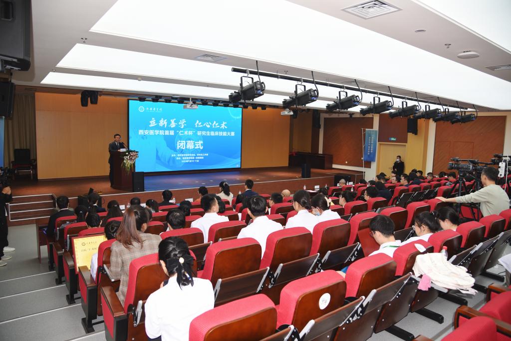 比赛闭幕式在一附院学术报告厅举行,首都医科大学全科医学与继续教育学院院长、西安医学院全科医学院特聘教授、名誉院长吴浩,国家卫生健康委卫生发展研究中心研究员郝晓宁,西安交通大学第一附属医院柏宏亮教授、西安交通大学第二附属医院医务部副主任寇惠娟教授、我校党委副书记、副校长巩守平出席,研究生处副处长霍健主持。