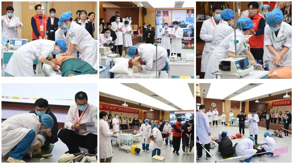 比赛分为初赛和决赛两部分,通过理论考试、OSCE多站式考核、急救情景模拟等考核形式多维度考评临床研究生的能力和水平,充分反映临床诊疗思维、临床分析决策能力和医患沟通能力,全方位、多角度展现“准医生”的临床水平和综合素质。经过两天紧张激烈的比赛,最终决出 “技能之星”10名,团队三等奖3队,二等奖2队,一等奖1队。同时,陕西省人民医院、空军军医大学第一附属医院、空军军医大学第二附属医院、西北妇女儿童医院、西安市红会医院、西安市人民医院、西安市第九医院、西安医学院第二附属医院8家参赛培养基地获得优秀组织奖,我校一附院获得特殊贡献奖。