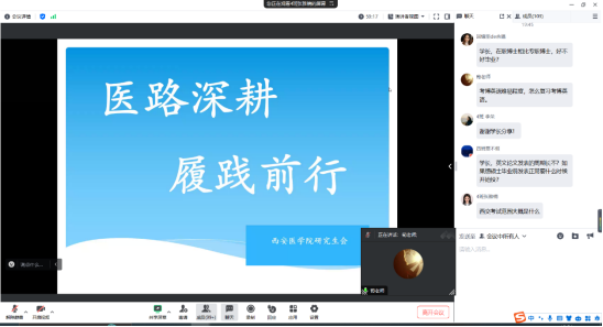 本次分享会结合当下申博及就业形势展开,为同学们提供了良好的学习交流机会,不仅使同学们了解了考博的相关情况,同时分析了与职业发展密切相关的问题,内容丰富且有意义,有助于同学们在临床规培实践、未来个人职业规划等方面提高认识,为将来的学习和求职生涯奠定夯实根基。研工部后期会继续办好朋辈沙龙系列活动,不断提升学风建设,助推同学们“博”学之路,筑梦青春! (研工部图/文 荀丹丹 屈 申)
