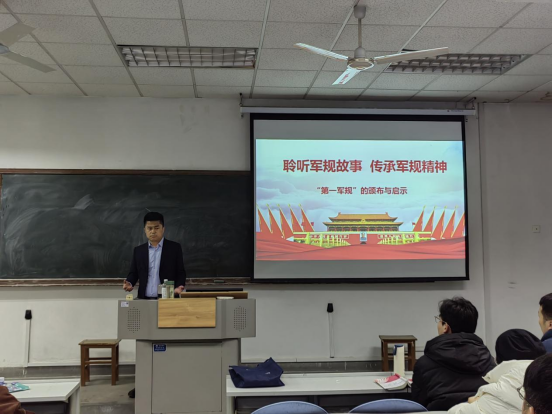 为深入学习贯彻习近平新时代中国特色社会主义思想,加强学生党员党性修养,强化纪律意识,不断引导青年学生坚定信念,严明纪律。1月13日早,研究生党总支书记、研究生工作部部长张光伟以“聆听军规故事,传承军规精神”为题讲授党课,学生第三党支部全体党员参加了本次党课学习。
