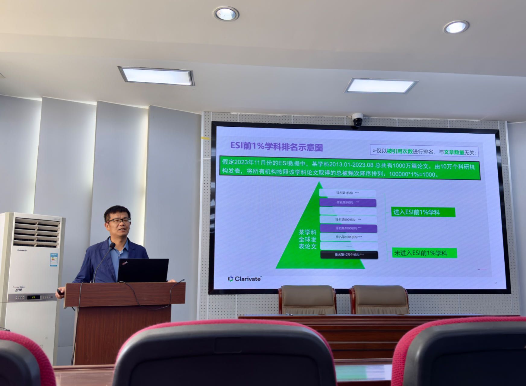 为进一步加强学科建设、学科服务及科研评价工作,4月25日下午,我校邀请科睿唯安学术研究事业部业务总监杨志强先生作“客观数据助力一流学科建设与科研评价 ”专题讲座。校级重点学科带头人、学术骨干、研究生处(学科办)、科技处及图书馆相关工作人员约80余人参会,由研究生处(学科办)副处长霍健主持。