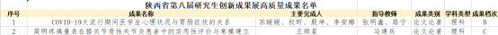 陕西省第八届研究生创新成果展近日圆满落幕,我校硕士研究生的创新项目荣获二项高质量成果奖。此次创新成果展由陕西省教育厅、省学位委员会组织举办,旨在展示陕西省研究生教育的最新成果,激励研究生的创新精神和实践能力。