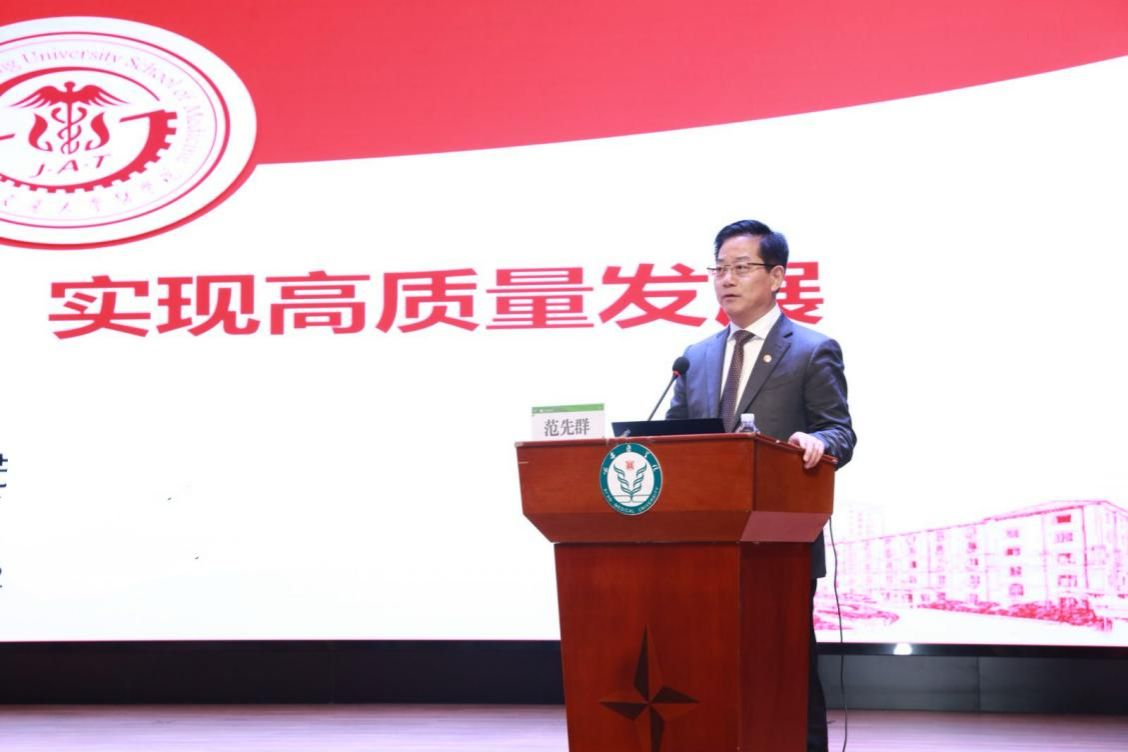 最后,校长巩守平对范先群院士的精彩报告与传经送宝致以衷心感谢!他表示,上海交通大学医学院所取得辉煌成就的背后,正像范院士所讲的“不是我们命好,是我们拼命”的精气神所在。他向与会同志讲到,西安医学院的高质量发展需要全员进一步解放思想,大力发扬拼搏精神,主动担当,攻坚克难,要有“爱拼才会赢”的魄力和干劲,学校期待与上海交通大学医学院的深度合作。
