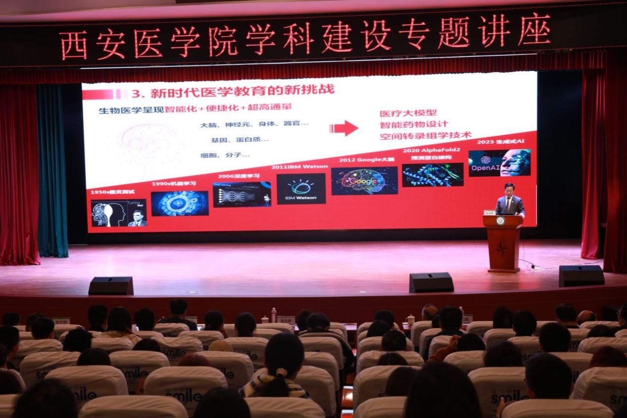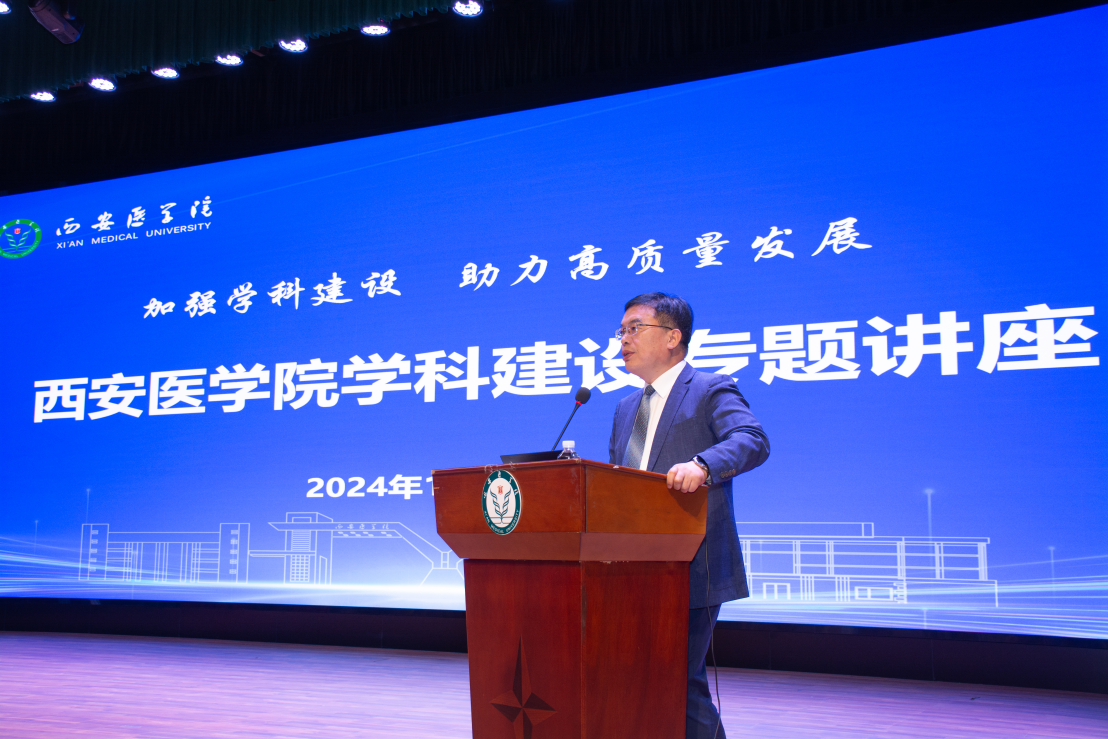 为进一步加强学科建设,促进学术交流与合作,助力各学科内涵建设,10月20日下午,学校邀请中国工程院院士、上海交通大学副校长、上海交通大学医学院院长范先群教授在未央校区学术报告厅作学科建设专题讲座。讲座由校长巩守平主持,党委副书记、纪委书记田民政、副校长苏兴利、教职工及附属医院教师代表500余人参会。