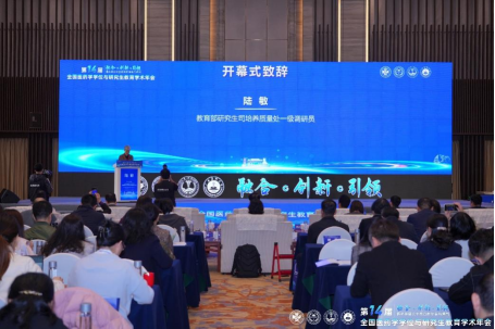 国务院学位委员会办公室、教育部研究生司培养质量处一级调研员陆敏,中国工程院院士、中国学位与研究生教育学会医药科工作委员会主任委员詹启敏,中国学位与研究生教育学会副会长王战军,自治区党委教育工委专职副书记、教育厅党组成员李晓勇,广西医科大学校长曾志羽在开幕式上致辞。开幕式由广西医科大学副校长卢德成主持。专题报告由中国学位与研究生教育学会医药科工作委员会秘书长、北京大学研究生院医学部分院常务副院长徐明主持。王战军、詹启敏、曾志羽分别做了题为《贯彻<学位法>自主培养拔尖创新人才》《现代医学发展中的医学人文》《加快建设立足广西、面向东盟、服务“上合”的国内一流、国际著名医科大学》专题报告。