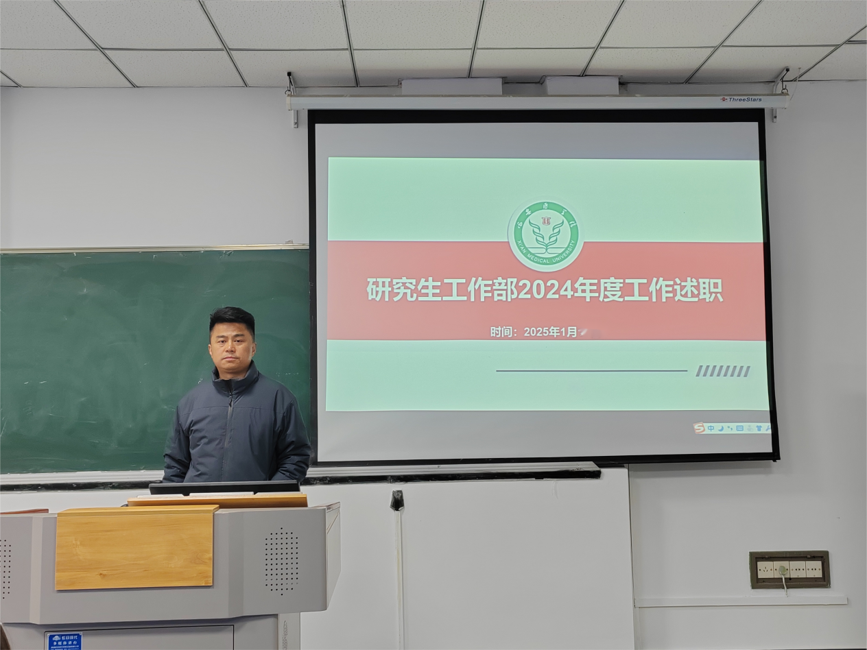 为全面总结工作经验,精准剖析现存问题,科学规划未来发展,2025 年1月18日,研究生工作部召开2024 年度述职会议,会议由研究生工作部部长张光伟主持。