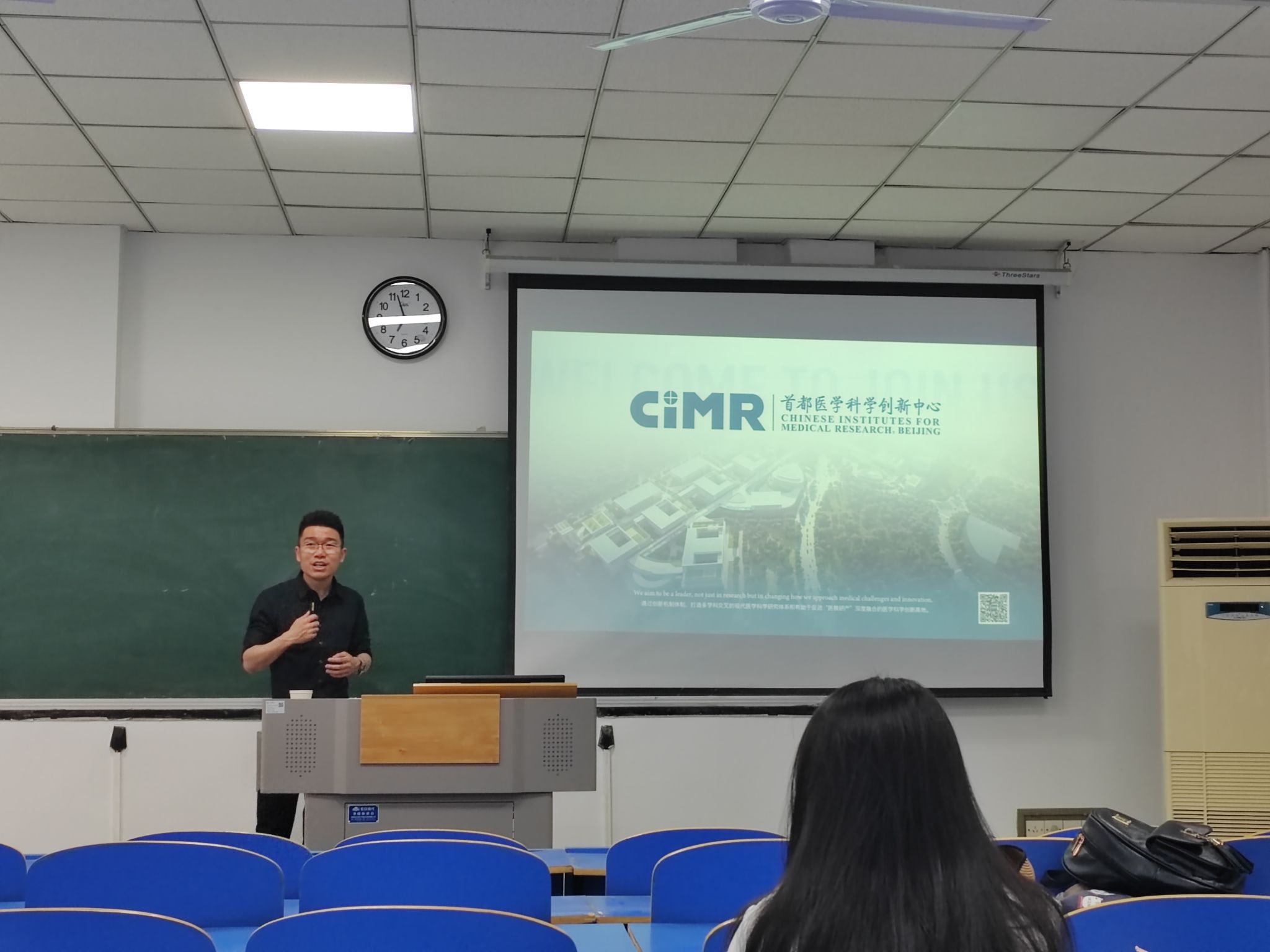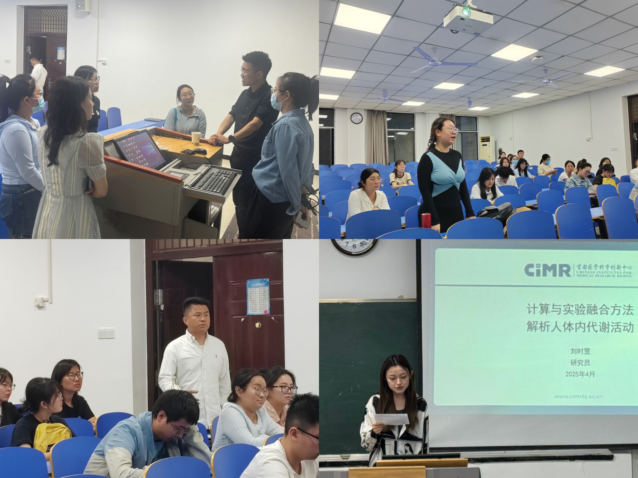 刘时昱研究员详细地介绍了首都医学科学创新中心的整体情况,包括中心的发展历程、科研实力、研究方向和未来规划等方面。同时,还和同学们分享了个人实验室的创办初衷、发展过程及取得的系列成果,以及自己所专注的“计算与实验融合方法解析人体内代谢活动” 领域的前沿动态和研究成果,展示了该领域广阔的发展前景,激发了同学们浓厚的兴趣。让在场的师生对该中心和实验室有了更为直观和深入的了解。