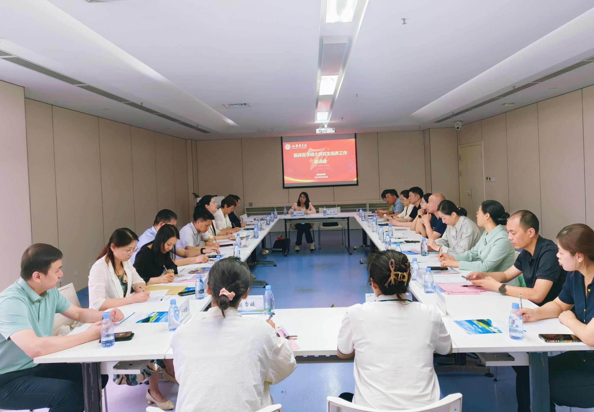 为强化医教融合协同育人工作走深走实,持续推进专业学位研究生培养工作提质增效,培养优秀高素质高层次医疗卫生人才,为学位点专项核验工作做好充分准备。5月30日,学校组织召开2025年临床医学硕士专业学位研究生培养工作座谈会,空军军医大学第一、第二附属医院等十余家研究生联合培养基地负责人、研究生培养管理人员、硕士研究生导师代表参加会议,副校长苏兴利出席会议并讲话,会议由研究生处(学科办)处长王燕主持。