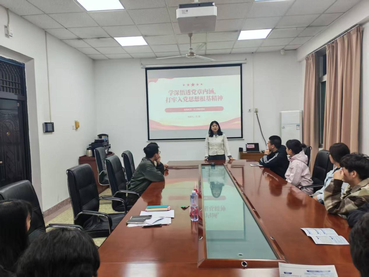 研究生学生第三党支部书记吕欣围绕“学深悟透党章内涵,打牢入党思想根基”这一主题进行授课。她重点阐释了思想入党、组织入党、行动入党三者构成的完整党性修养体系。吕欣书记指出,信仰认同是思想入党的核心,要求真学真懂真信马克思主义;程序规范是组织入党的保障,要严格遵循党章规定的入党手续;知行合一是行动入党的关键,要将理想信念转化为服务人民、奉献社会的实际行动。她强调,这三者相辅相成,共同作用于党员的成长过程,只有筑牢信仰根基,规范成长路径,践行使命担当,才能成为一名合格的共产党员。