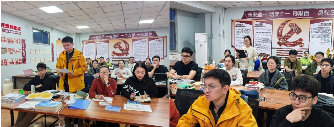 活动主要采用了“领学导读+分组研讨+集中交流”的形式进行。在领学环节,研究生学生第一党支部副书记李雨欣对《共产党宣言》的写作背景、核心观点与时代价值进行了深入浅出的解读,并引导同学们思考《中国思想史》的脉络如何为马克思主义在中国的发展提供了丰厚的文化土壤。随后,同学们围绕经典著作中的核心论断、思想精髓及其对当代社会与个人学术研究的启示等议题,展开了热烈而深入的讨论。同学们结合各自专业背景,从不同角度分享了学习心得,现场思想碰撞频繁,交流氛围活跃。