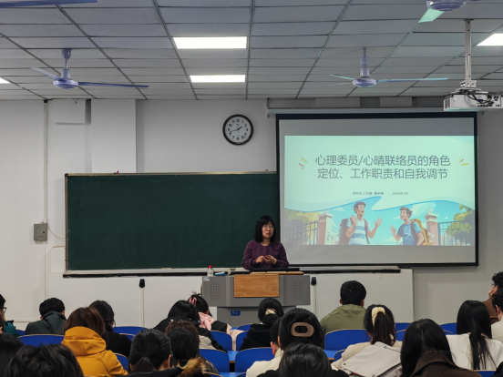为深入贯彻落实省教工委、教育厅关于校园安全稳定工作的系列重要指示精神,结合学校新学期工作部署会议要求,进一步夯实临床专业硕士研究生心理健康教育工作基础,充分发挥心晴联络员在朋辈心理支持中的桥梁纽带作用。3月11日,研工部在含光校区召开了心晴联络员专题培训,培训由研究生工作科科长曹卓琳副教授主讲,各班辅导员及心晴联络员参加培训。