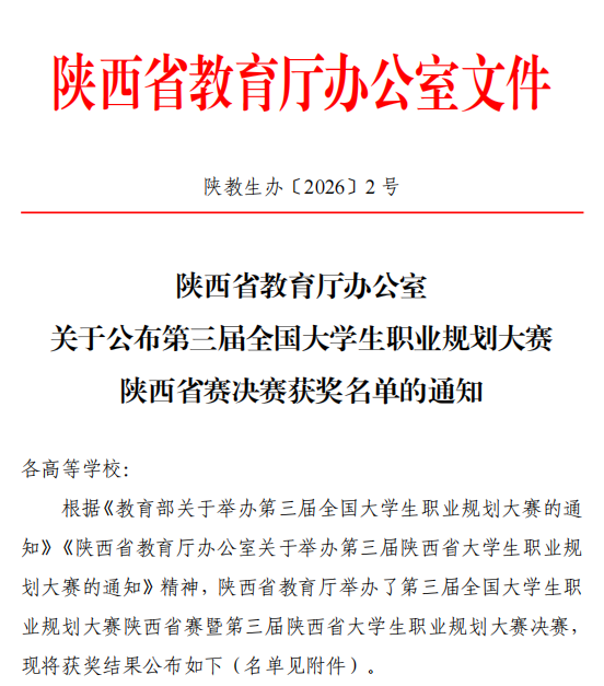 近日,由陕西省教育厅主办、以“筑梦青春志在四方,规划启航职引未来”为主题的第三届全国大学生职业规划大赛陕西省决赛圆满落幕。本届大赛覆盖全省90余所高校,吸引50万余名学子踊跃参与,历经校赛选拔、省级复赛等多轮比拼,我校两名研究生晋级全省总决赛,展现了我校研究生扎实的职业素养与清晰的发展规划。