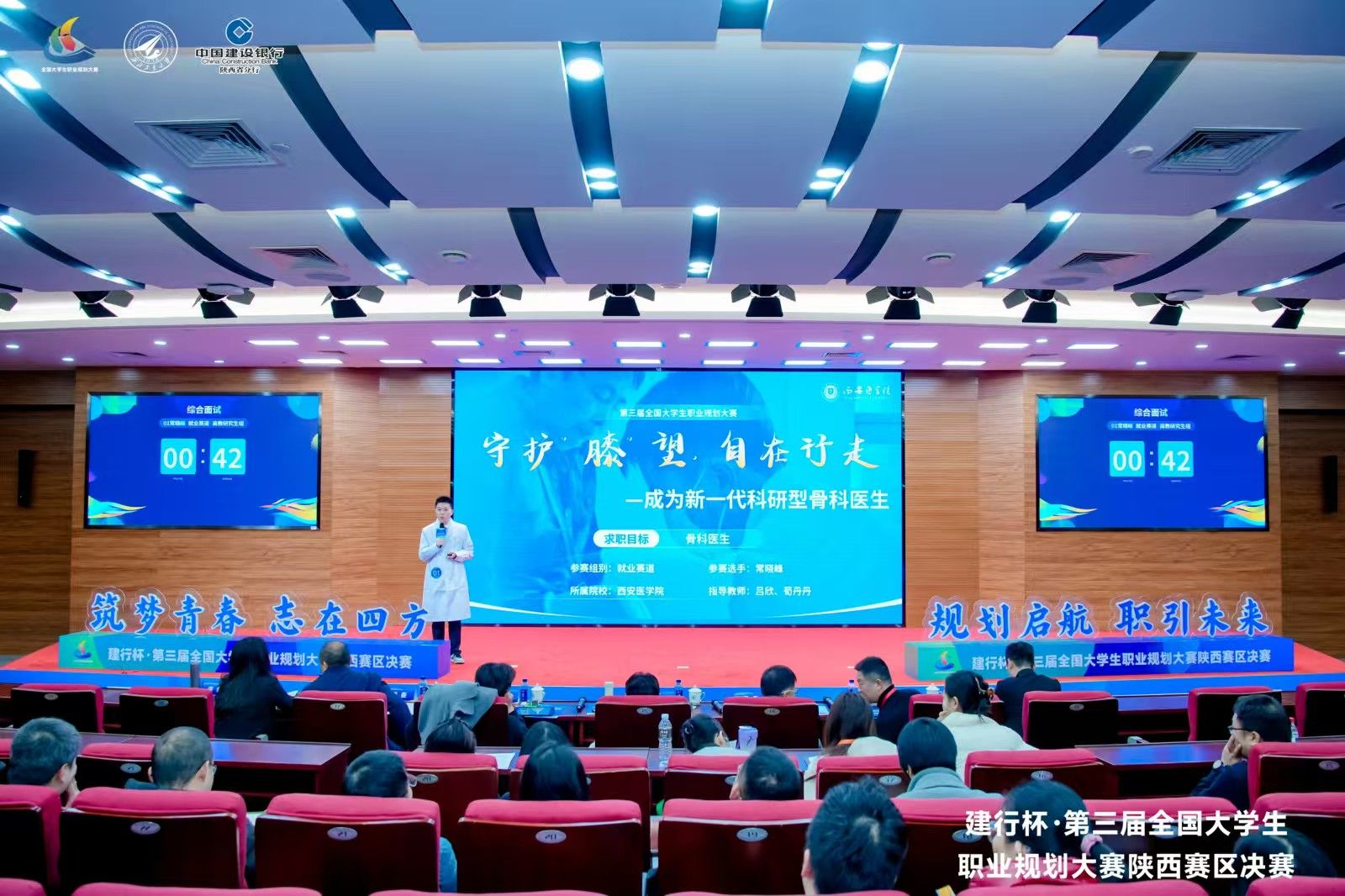 决赛现场,我校研究生骨科学专业常晓峰同学(指导教师:吕欣、荀丹丹)、肿瘤学专业刘美汐同学(指导教师:邢润楠)凭借明确的职业定位、系统的发展路径与稳健的现场表现,双双荣获研究生就业赛道铜奖,为学校再添荣誉。