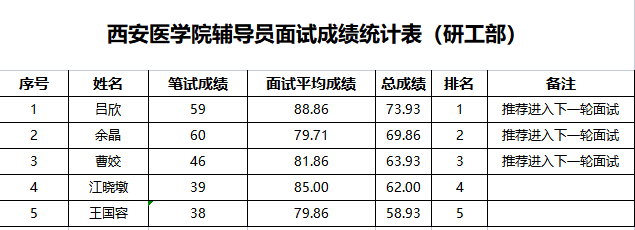 西安医学院研工部辅导员面试成绩予以公示,公示期:6月5日--6月8日。