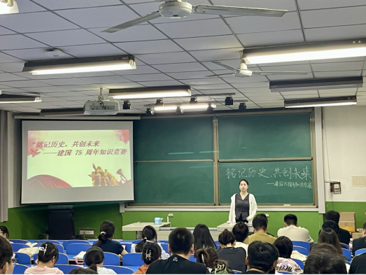 为庆祝中华人民共和国成立75周年,加强党员国家意识和爱国情怀,同时持续巩固推进党史学习教育成效,增强党员的责任感与使命感,提升党员的整体素质,西安医学院研究生学生第一党支部于9月28日下午6点,组织全体党员和积极分子在综合楼201教室举办了“铭记历史,共创未来——中华人民共和国成立75周年知识竞赛”。活动由组织委员刘书雨主持。