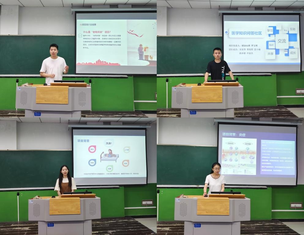 本次比赛共有43个项目参与评选,严格按照校赛要求进行路演,选手们通过精美的PPT进行现场展示,项目背景、项目概述、市场分析以及发展战略等内容的一一展开,生动地介绍了自己的想法和产品,充分展现了选手们的创新思维和个人魅力,向大家展示了数字经济时代和现代医学相结合的巨大潜力。
