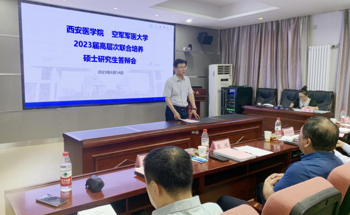 巩守平代表学校党委和行政向莅临本次答辩会的专家、导师表示热烈欢迎和衷心感谢,简要介绍了我校研究生培养基本情况。他指出,2020年省教育厅启动“军地院校联合培养高层次人才计划”后,我校开启与空军军医大学联合培养临床医学硕士专业学位研究生工作,今年是首次进行联合培养研究生申请学位论文答辩。2023届共有30名研究生列入此项“高层次人才培养计划”,其中空军军医大学第一附属医院21名、第二附属医院9名。学位论文答辩会也是研究生个人良好临床学术风貌和学校研究生教育成果的生动展现,充分体现了我校严谨的治学氛围和高标准的学术要求,对进一步提升研究生学位论文质量,推动研究生高质量高标准培养起到了积极的促进作用。