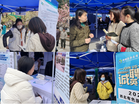 校招现场气氛热烈,各医院招聘展位前人头攒动。西安医学院研究生工作部工作科科长曹卓琳、就业专干荀丹丹先后来到通用环球西安西航医院、西北有色医院、上海德济医院有限公司、宝鸡高新医院等展位,与各医院负责人进行了面对面的沟通交流。